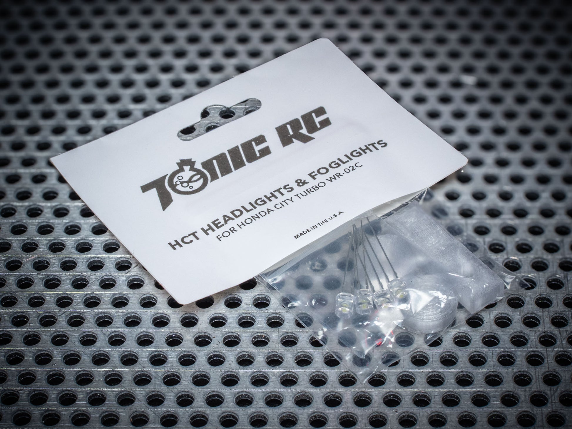 When I built my Honda City Turbo, I wasn’t a huge fan of the smoked headlights, so I built my own using transparent filament. And since the car didn’t come with foglights, I decided to build my own foglights as well. You’ll get two headlights with two 5mm LEDs (you can choose either cool or warm white). You’ll also get two fog lights (you can choose either cool or warm white for these a well). That’s 4 light pieces in total and 4 LEDs in total. Lights are simply glued into place (note the tabs on the headlights for positioning). I like using E6000 glue for this type of application. Be sure to drill out center holes in the buckets of the body's headlight area so that your LED wiring can go through it. Do that before gluing anything!